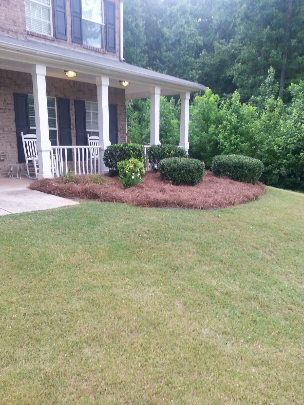 We mulch and pine straw flower beds and tree lines to perfection, enhancing your shrubbery and beds throughout your lawn.
